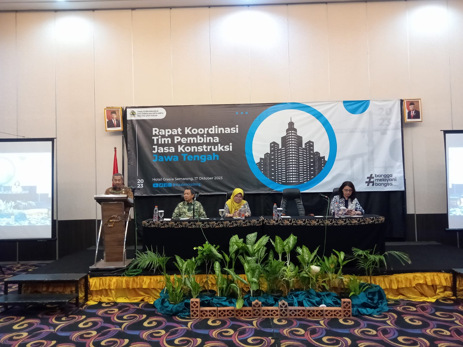 Semarang – Pada Rabu (18/10/2023) telah dilaksanakan Acara Rapat Koordinasi Tim Pembina Jasa Konstruksi Kab./Kota Se-Jawa Tengah di Hotel Grasia Semarang. Rapat Koordinasi Tim Pembina Jasa Konstruksi Kab./Kota Se-Jawa Tengah adalah Pembinaan jasa konstruksi untuk Tim Pembina Jasa Konstruksi pada masing-masing Pemerintah Daerah. Pembinaan jasa konstruksi yang dapat dilakukan oleh Pemerintah Kabupaten/Kota antara lain pelatihan tenaga terampil, pengelolaan sistem informasi jasa konstruksi cakupan Kab/kota, penerbitan perizinan berusaha bidang jasa konstruksi dan pengawasan tertib usaha, penyelenggaraan, & pemanfaatan jasa konstruksi. Pembinaan jasa konstruksi yang dapat dilakukan kepada masyarakat jasa konstruksi yang terdiri atas asosiasi perusahaan, asosiasi profesi, lembaga Pendidikan dan pelatihan kerja, pengguna Jasa, penyedia Jasa, perguruan tinggi/pakar, pelaku rantai pasok, tenaga kerja konstruksi (TKK), pemerhati konstruksi, lembaga sertifikasi jasa konstruksi dan pemanfaat produk Jakon. Acara Rapat Koordinasi Tim Pembina Jasa Konstruksi Kab./Kota Se-Jawa Tengah ini dibuka oleh Kepala Dinas PU Bina Marga dan Cipta Karya Provinsi Jawa Tengah, Dr. Ir. A. R. Hanung Triyono, M.Si.