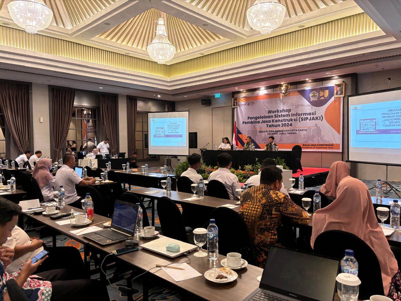 Pada hari Rabu (25/9/2024), Dinas PU Bina Marga dan Cipta Karya Provinsi Jawa Tengah menyelenggarakan Workshop Pengelolaan Sistem Informasi Pembina Jasa Konstruksi (SIPJAKI) di Kota Surakarta. Kegiatan ini dihadiri oleh para Pembina Jasa Konstruksi dan para administrator SIPJAKI dari 35 Kab/Kota di wilayah Provinsi Jawa Tengah. Kegiatan dibuka oleh Kepala Dinas PU Bina Marga dan Cipta Karya Provinsi Jawa Tengah yang diwakili oleh Kepala Balai Pengelolaan Jalan Wilayah Surakarta. “Sistem Informasi Pembina Jasa Konstruksi (SIPJAKI) dibangun sebagai media bagi Pemerintah Daerah untuk memantau pemenuhan Indikator Kinerja Kunci (IKK) OPD sub urusan jasa konstruksi pada daerahnya masing-masing dan juga sebagai media Pemerintah Pusat untuk memantau pemenuhan IKK sub urusan jasa konstruksi pada Pemerintah Daerah. Oleh karena itu setiap Pemerintah Daerah wajib mengupdate SIPJAKI pada daerahnya masing-masing melalui administrator daerah yang ditunjuk,” ujar beliau dalam sambutannya. Beliau juga berharap melalui penyelenggaraan Workshop Pengelolaan SIPJAKI ini dapat menjawab kendala dan permasalahan yang dialami oleh administrator SIPJAKI daerah sehingga setelah kegiatan ini selesai penginputan data SIPJAKI di daerah dapat berjalan rutin dan optimal.